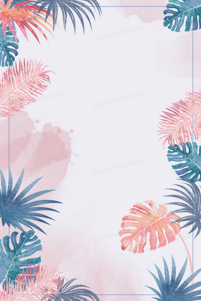 小清新水彩热带植物叶片花卉边框背景背景图片素材免费下载 植物背景 3543 5315像素 熊猫办公